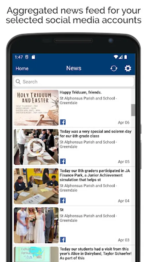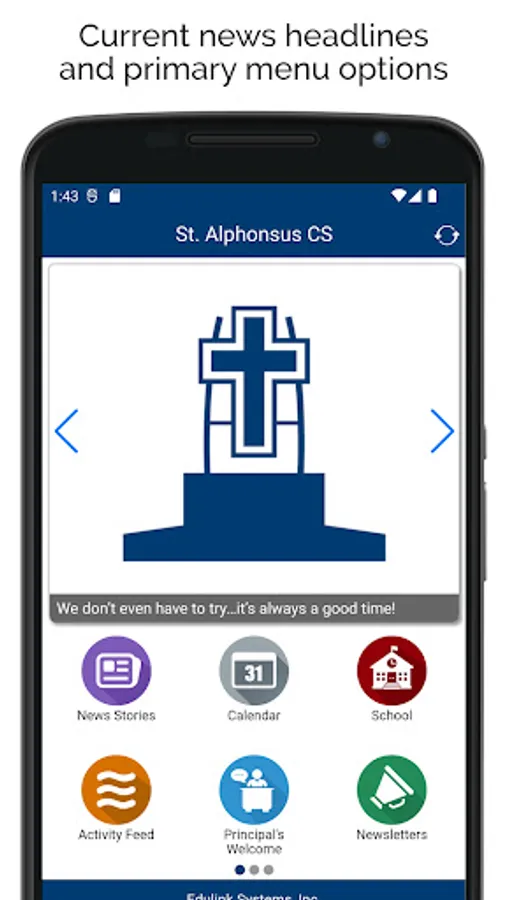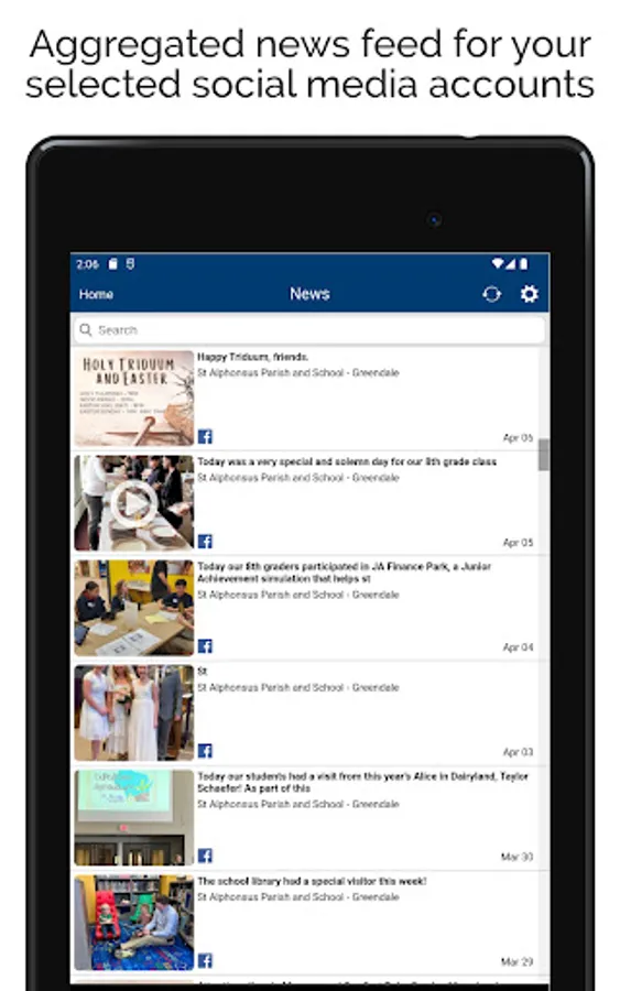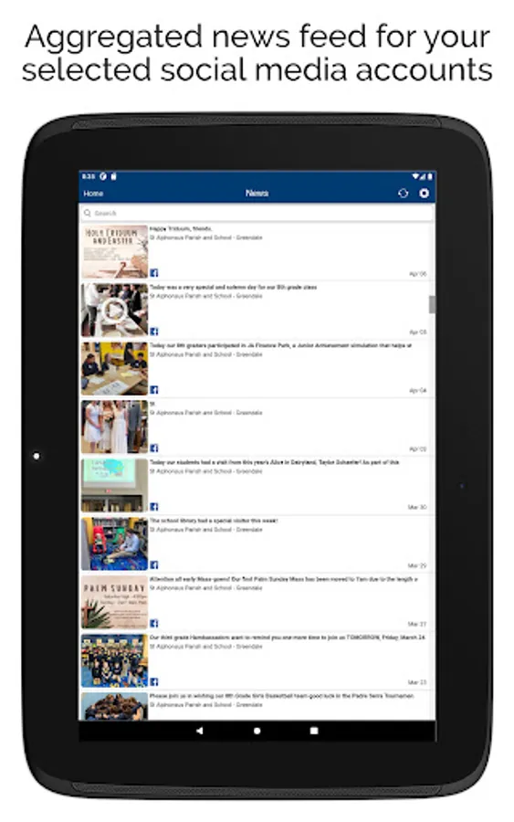Stay informed of school and district announcements, activities, sports schedules and events at St. Alphonsus Catholic School. Receive important messages; monitor activities from social media networks including Facebook and Instagram. Transfer any activity or event directly to your native Google calendar with a single tap.