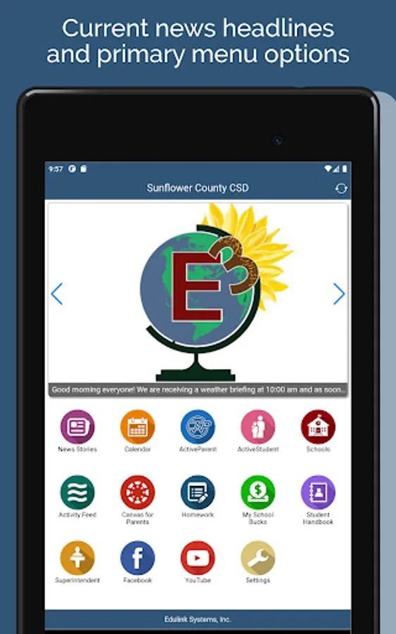Stay informed of school and district announcements, activities, sports schedules and events at Sunflower County Consolidated School District. Receive important messages from your selected list of schools; monitor district and school activities from social media networks including Facebook and YouTube. Transfer any activity or event directly to your native Google calendar with a single tap.