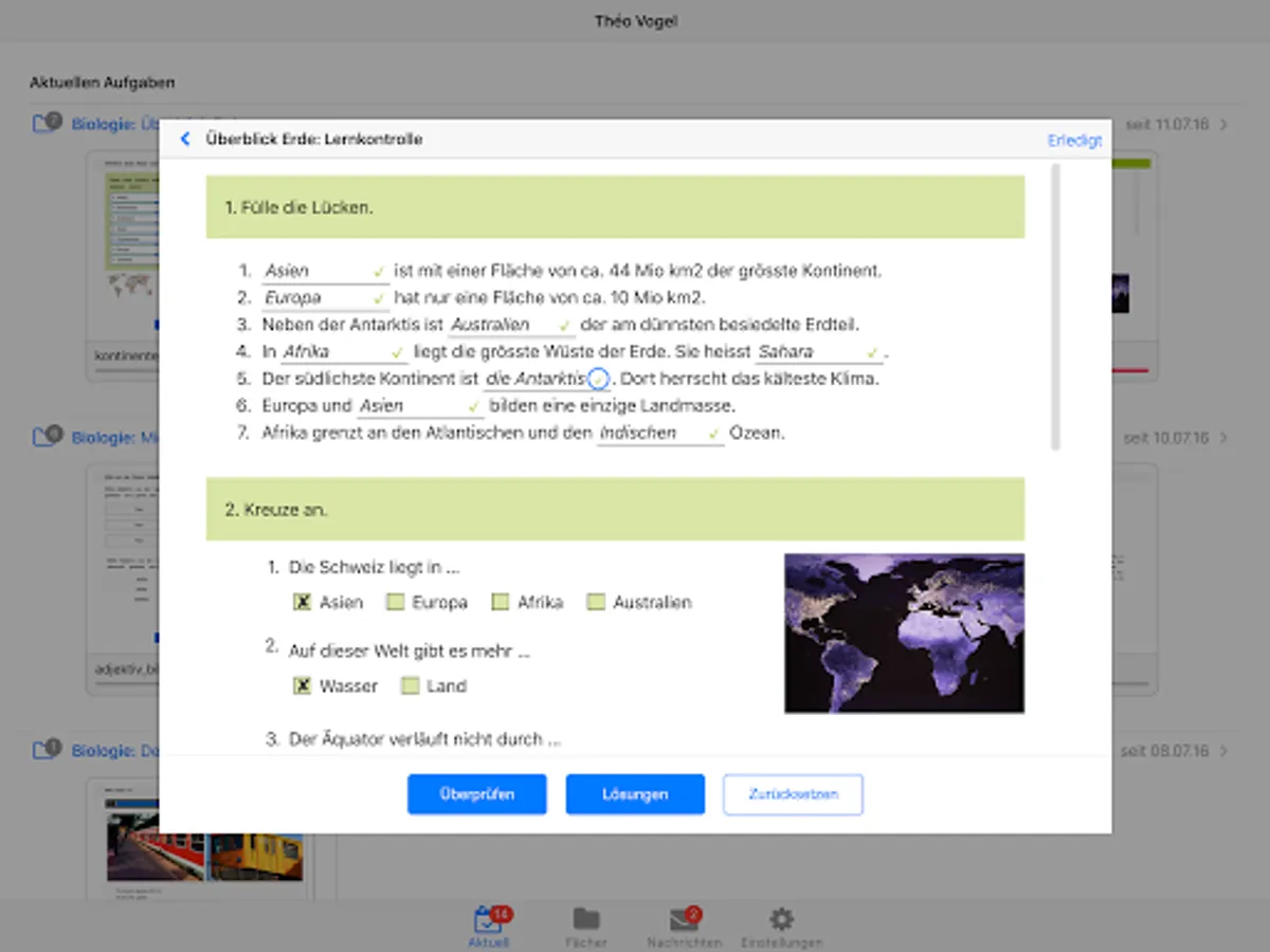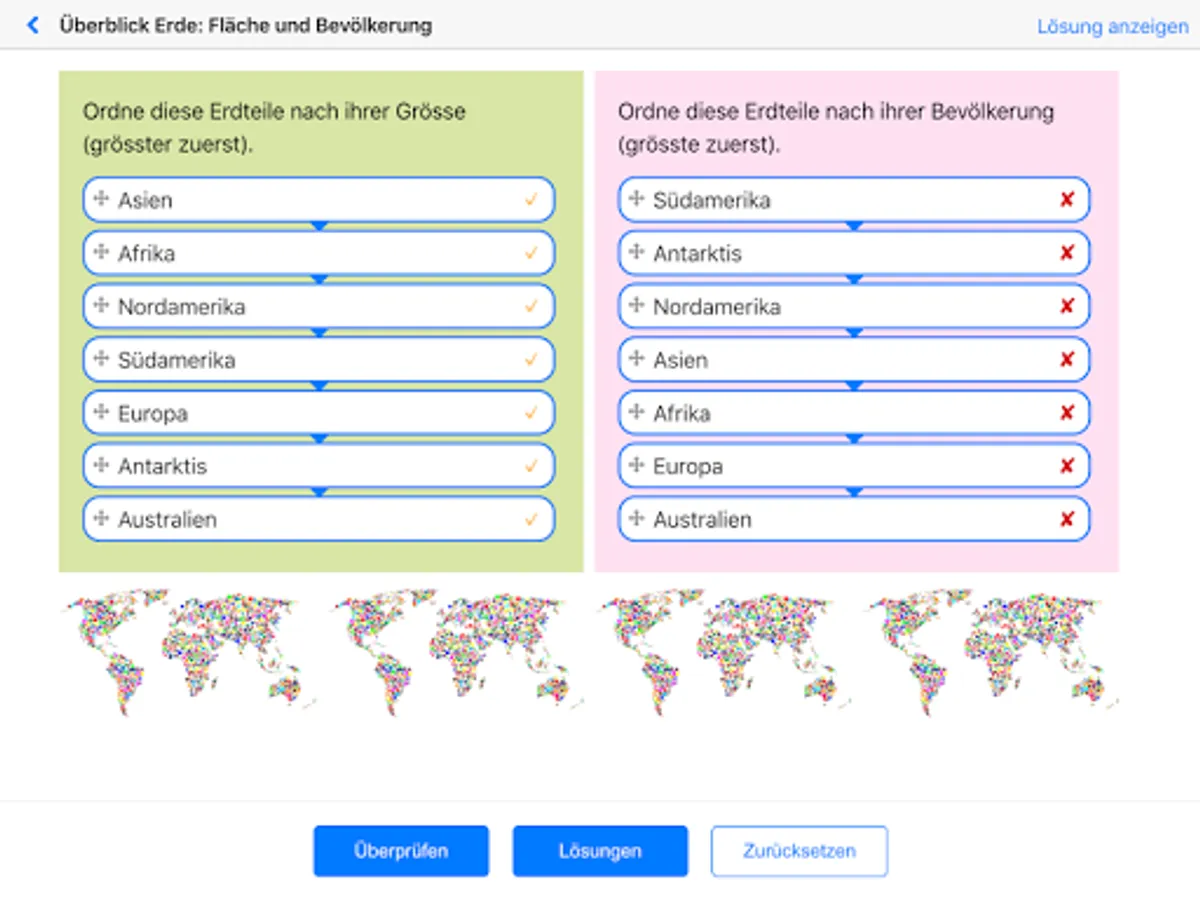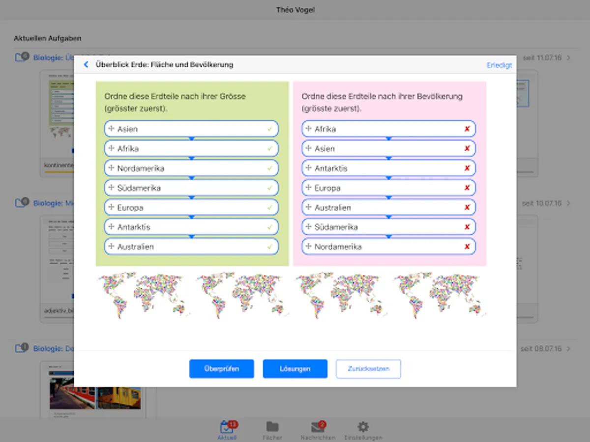 The students solve the exercises directly on their tablet in the app. The results and evaluations are clearly displayed to the teacher.