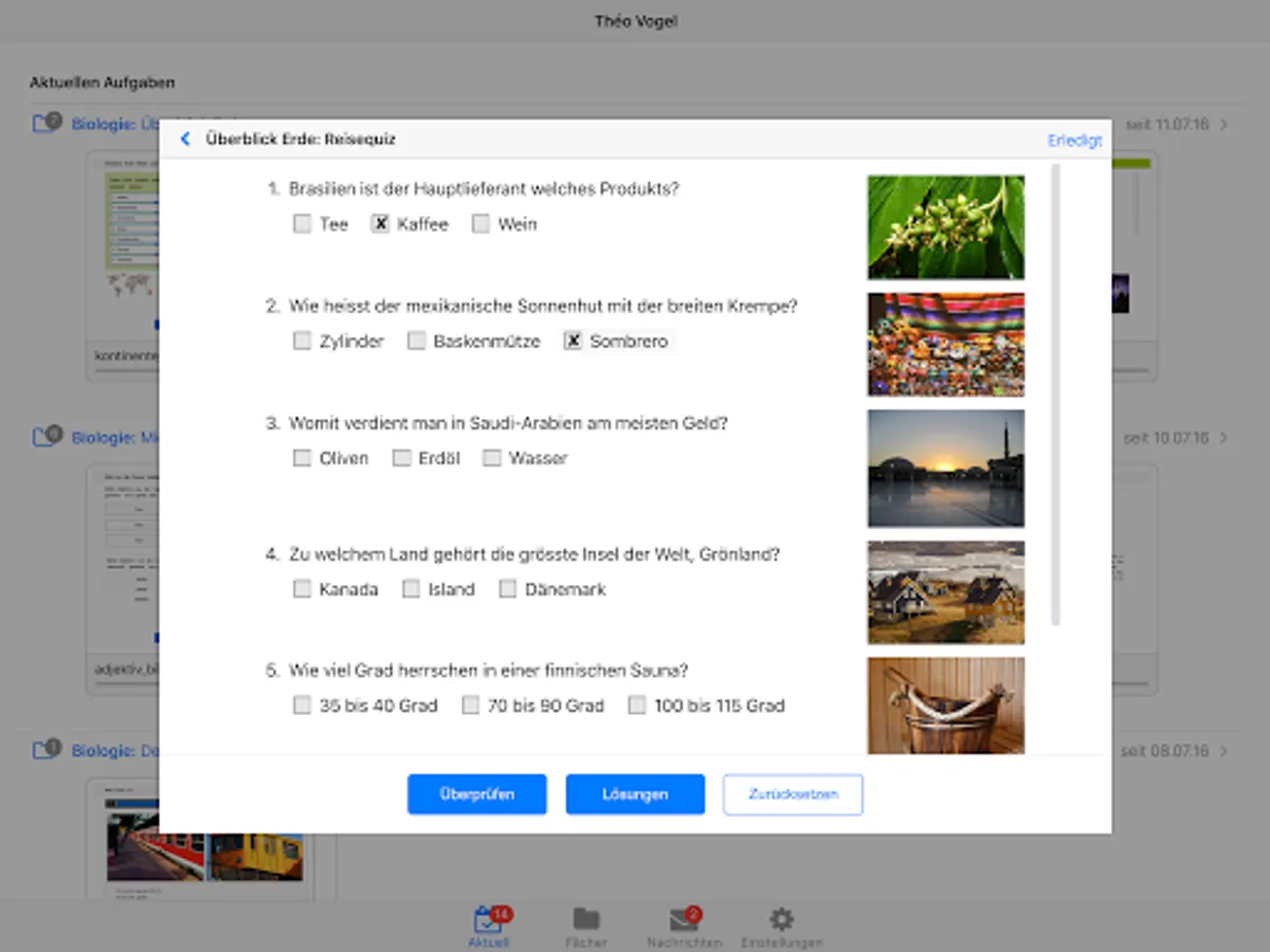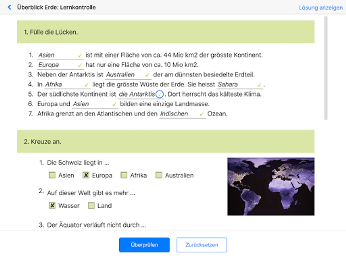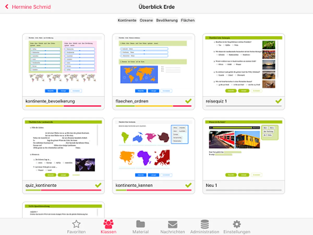 The students solve the exercises directly on their tablet in the app. The results and evaluations are clearly displayed to the teacher.
