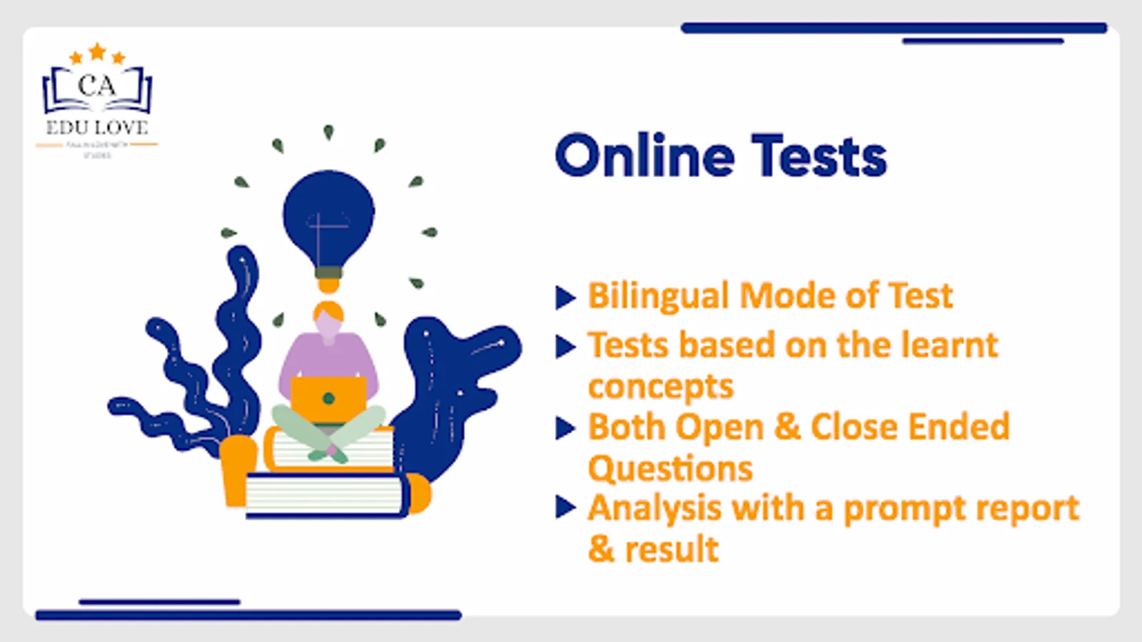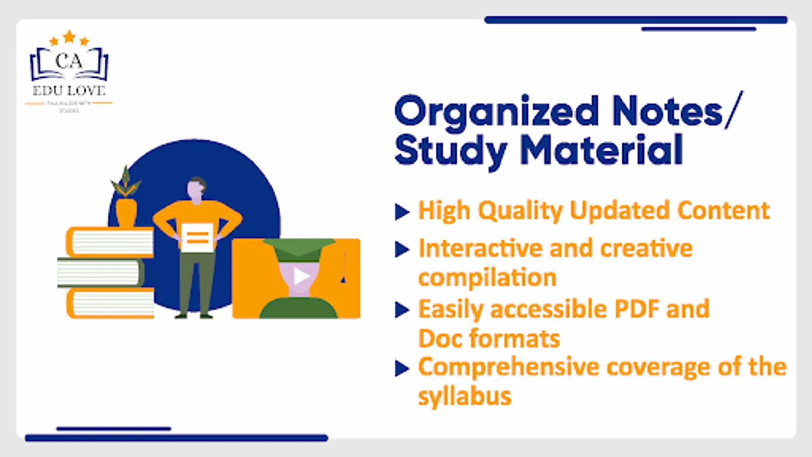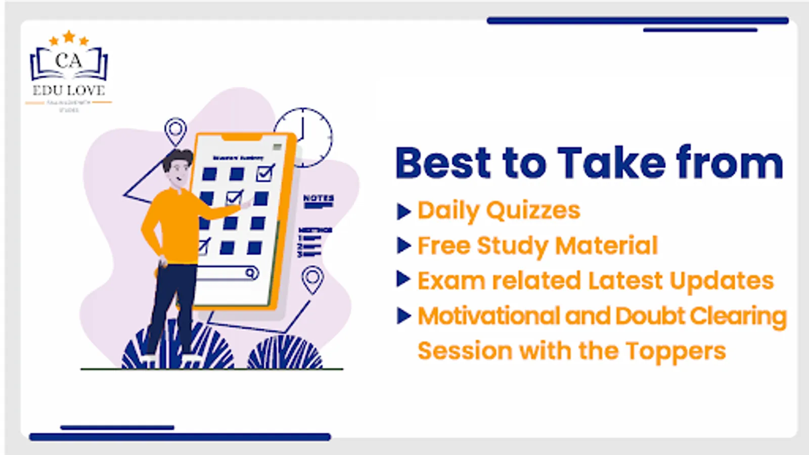 The EDULOVE is an initiative of CA Binaya kumar Jain who have score All India Rank 44 in CA Exam along with two gold medals, initial for the students of class 11th and 12th Commerce with following 2 broad objectives