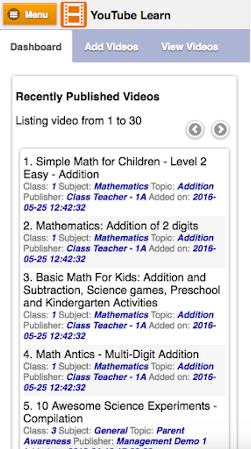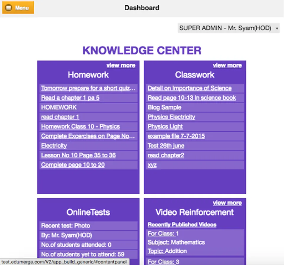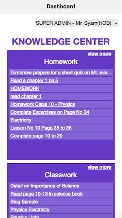 - Learning Center to access content shared by the teacher. Content can be pdf, images, tasks, Tests and blogs.