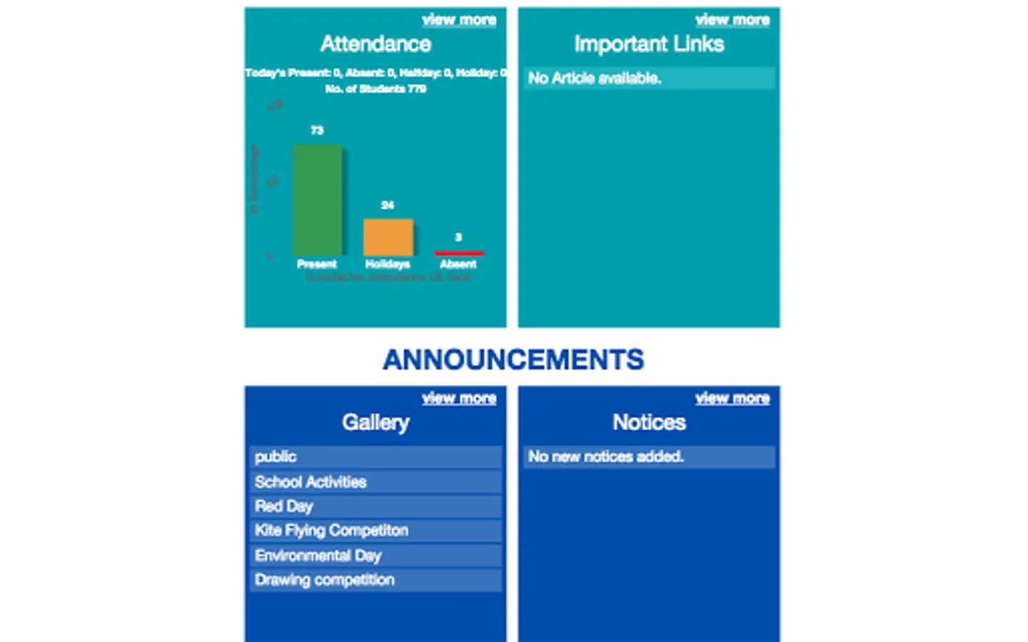 - Send unlimited alerts on events, notices, academic details, dues etc.