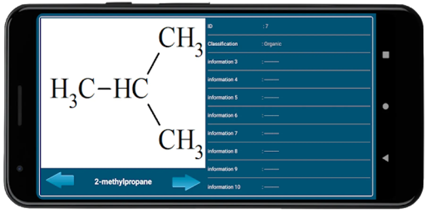 - Application features : (Elements names, elements formulas, simple quiz on elements)