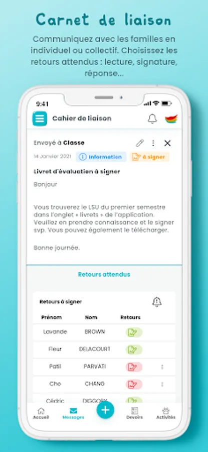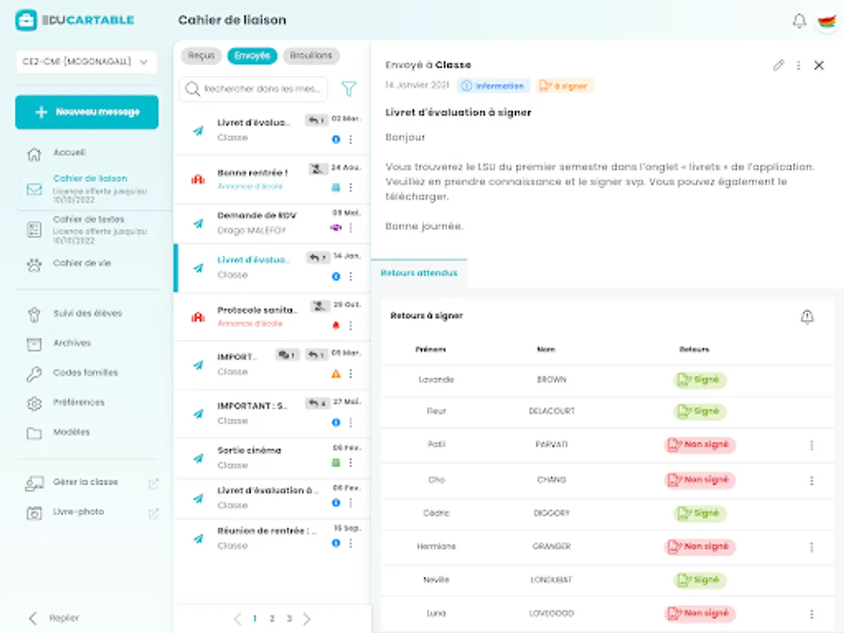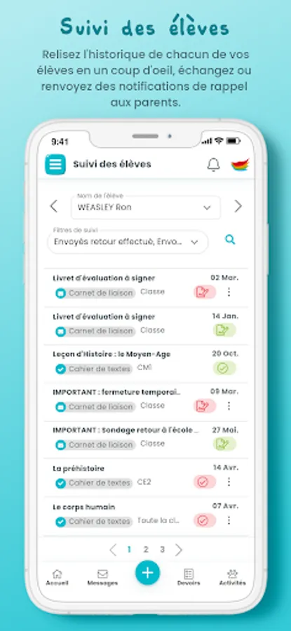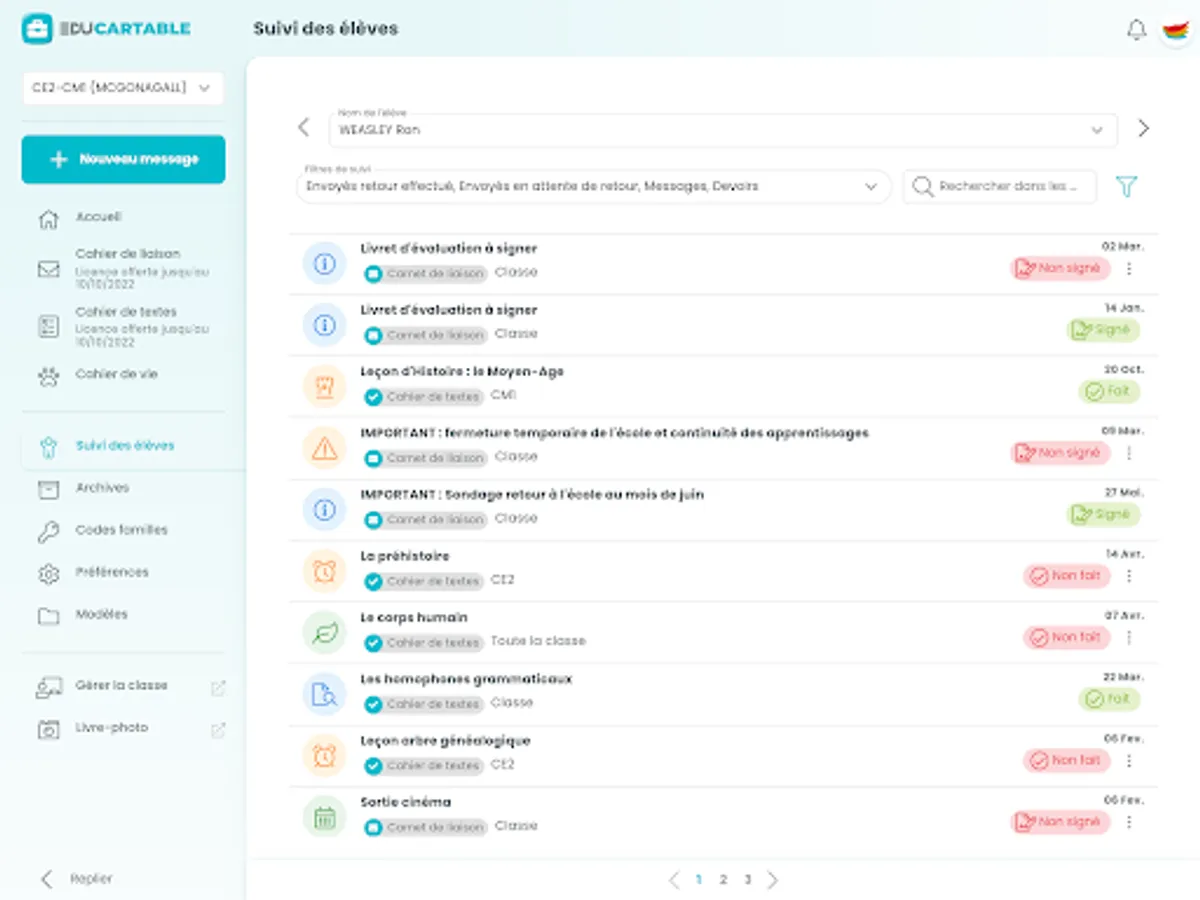* Follow the exchanges with families as closely as possible thanks to the student follow-up page and send reminder notifications in one click.
