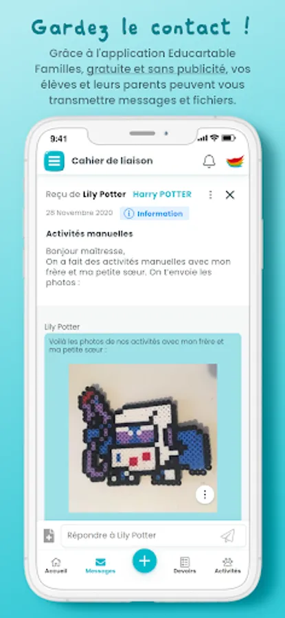 * On the teacher side as well as on the family side, you are notified of the arrival of a new message thanks to email and push notifications.