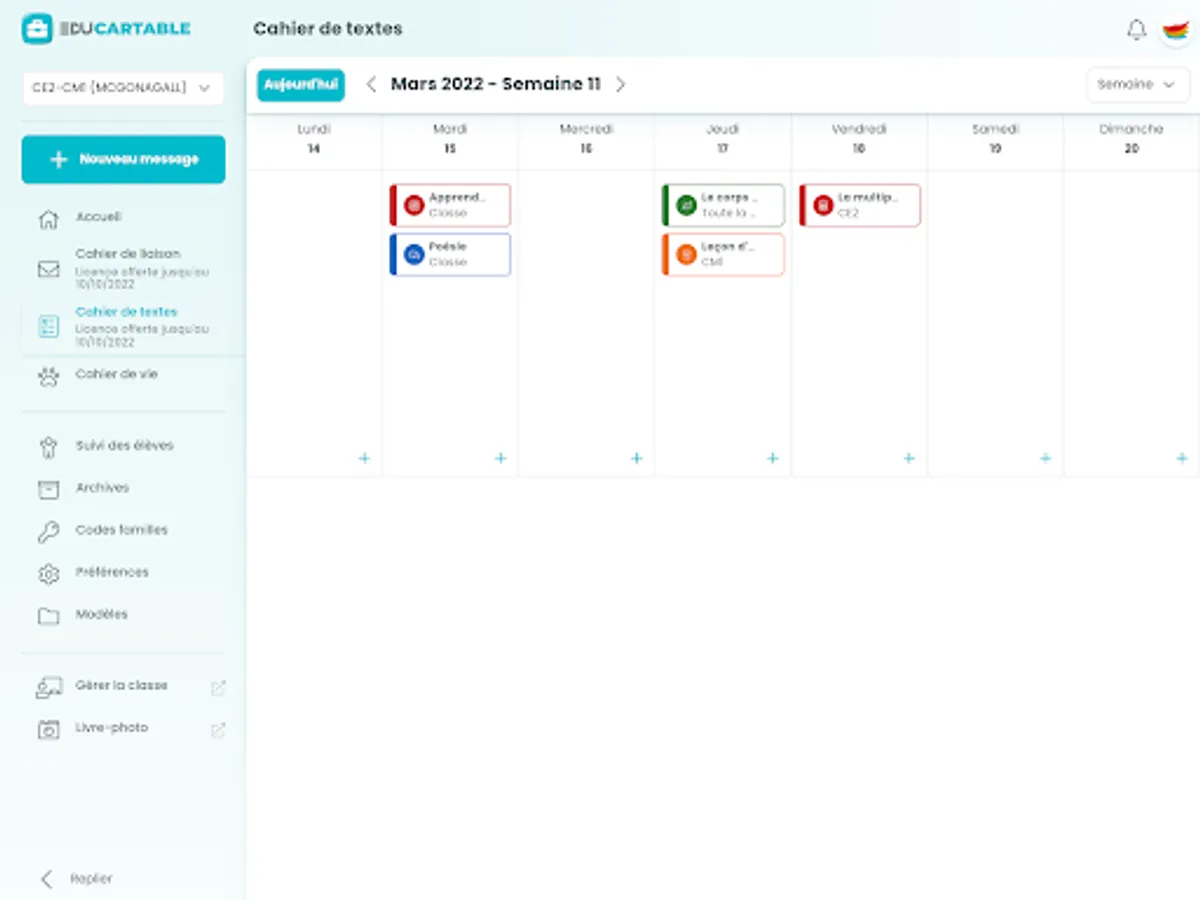 * Create in a few clicks a new lesson by determining the date, the discipline, the title, the title, the recipients.