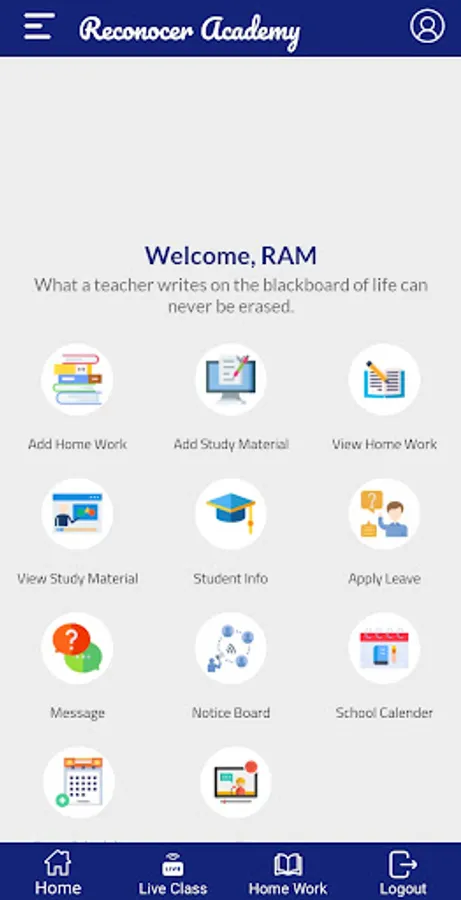 Reconocer Academy is app by administration for the Students performance,notices,homework.