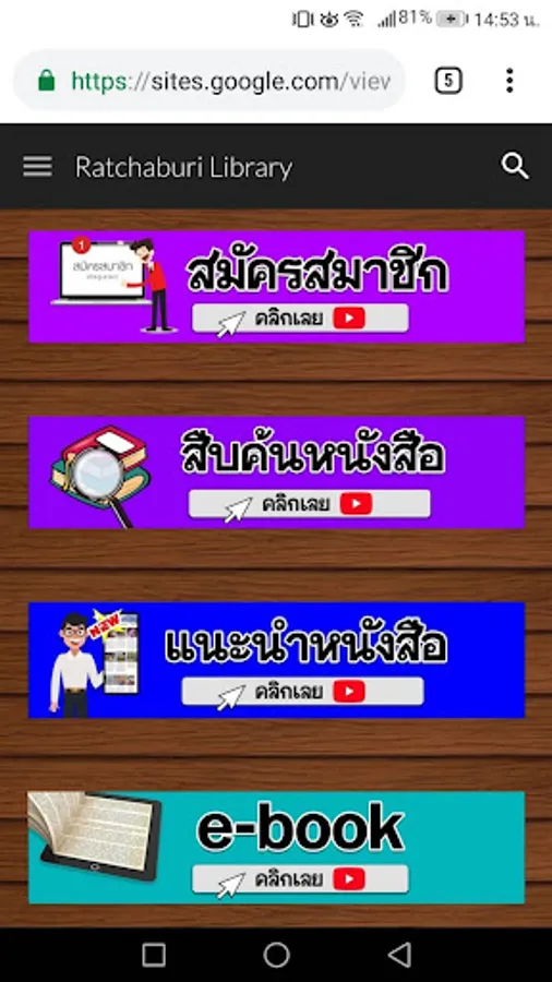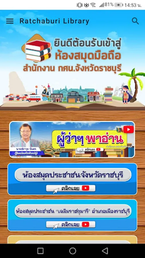 All ages in the form of informal education Focusing on people to access knowledge anywhere, anytime, and therefore develop mobile library applications. To be a medium of service for reading and learning Which is a way to read access that can be used easily Easy to search And able to meet the needs in the information technology era of users as well