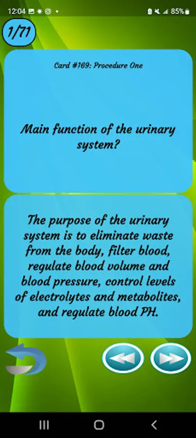 A test section to test your knowledge in a random order, as similar as possible to the ARRT® examination. It allows user to know if the correct answer was selected and if not a pop-up button will appear with access to the correct answer's explanation.