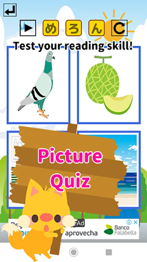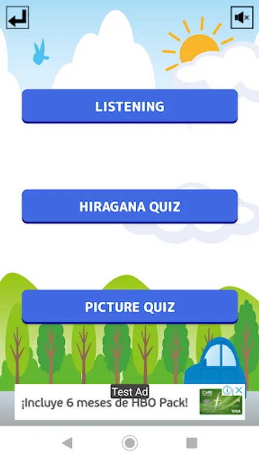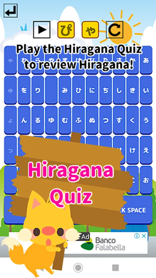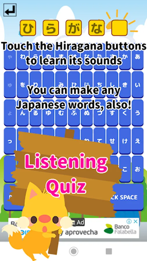 Play this game menu for learning the Hiragana letters and sounds.