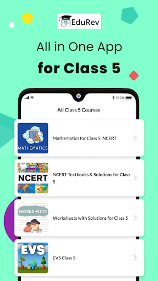 CBSE Class 5 App: NCERT Solutions & Book Questions is the best study app for CBSE 5th Class which offers NCERT Textbook & Solutions, NCERT Solutions, CBSE Past Year Papers, CBSE Sample Papers, MCQs (Multiple Choice Questions), Online Test, Video Lectures, famous CBSE books, Sample Worksheets, CBSE Question Bank, Previous Year Papers with solutions & a lot more. Undoubtedly, its the Best Learning App for Class 5th CBSE students.