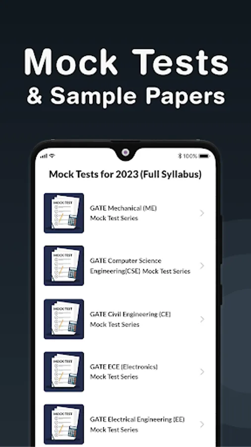 This App Also offers detailed Study Packages for GATE & offers MCQ Questions, GATE Solved Question Papers & Solutions, Online Mock Tests, Exhaustive Question Bank, GATE Online Mock Test Series, Topic-wise Online Tests, GATE Previous Year Question Papers with solutions, revision notes for all the important Engineering streams are provided: