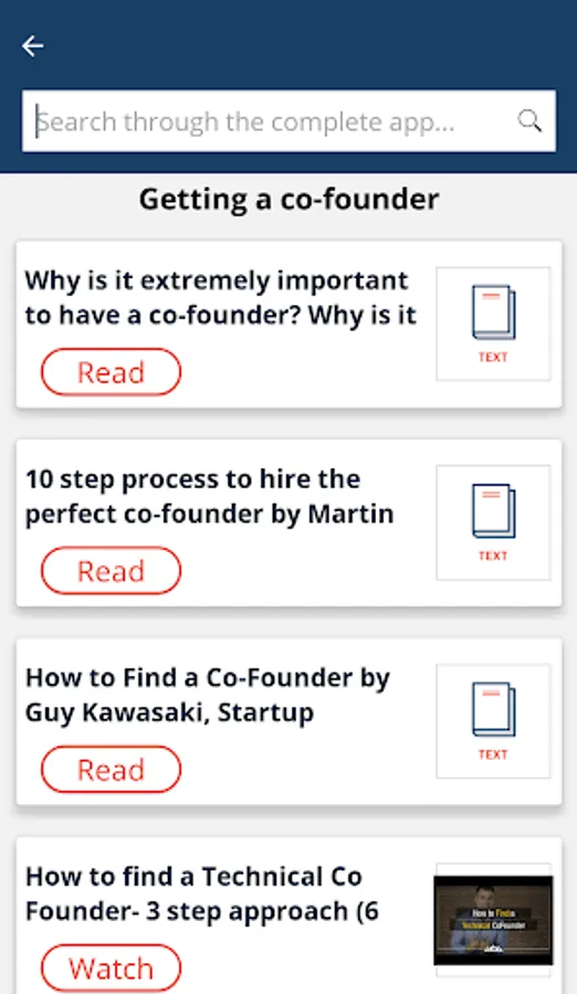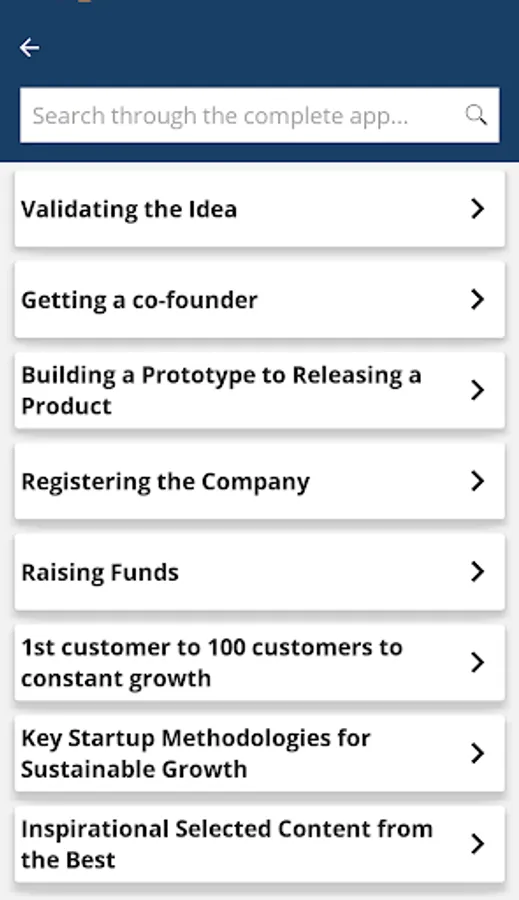 The App will take you through a wholistic Start-Up Journey, starting with idea validation, to finding a co-founder, creating your business plan, forming a team, process of raising funds, and ultimately making a successful company.