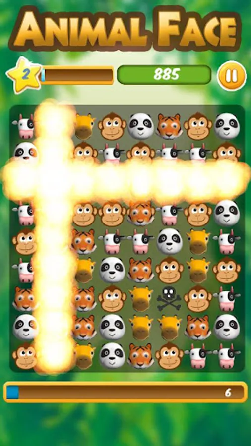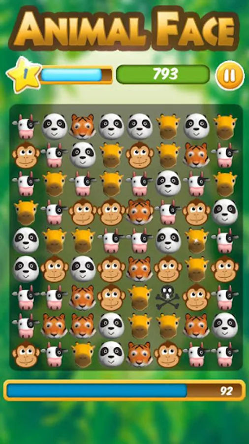 "Animal Face in Jungle" is a simple puzzle game that matches three animal faces.
