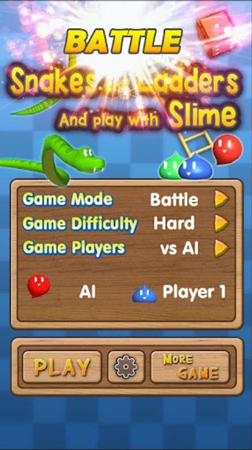 "Snake, ladder and slime" is a simple rule board game where you have to reach 100 levels using dice. But the battle mode must reach 100 steps while fighting each other.