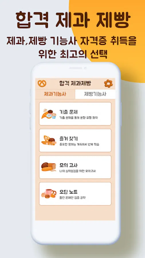 합격 제과제빵은 제과기능사 및 제빵기능사 자격 취득을 위한 학습앱입니다.
