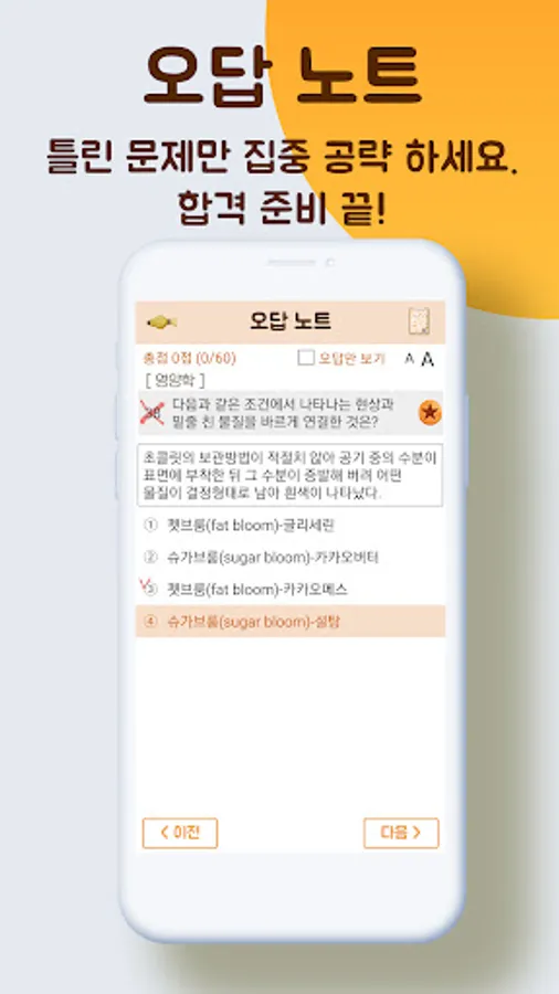 - 오답노트 기능을 제공하여 틀린 문항만 다시 학습할 수 있도록 하였습니다.