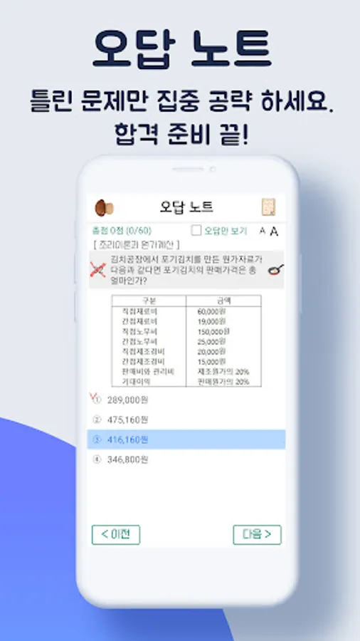 - Mock exam/wrong answer note function is the best shortcut to pass the cooking skills.