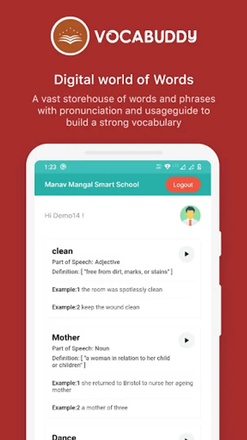 • VocaBuddy: Three 'words of the day' daily with definition, usage and correct pronunciation