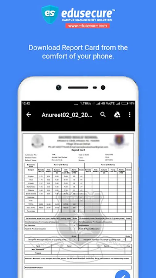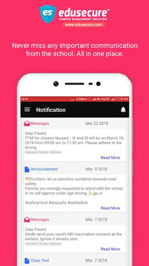 Our mobile application for parents & teachers- Edusecure Campus Solution App – enhances parent involvement through simplified communication and transactions to make the job of the teacher and school easier. They can now send communication in a paperless manner, and assign homework directly from the board in the classroom.
