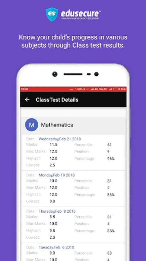 Our mobile application for parents & teachers- Edusecure App – enhances parent involvement through simplified communication and transactions to make the job of the teacher and school easier. They can now send communication in a paperless manner, and assign homework directly from the board in the classroom.