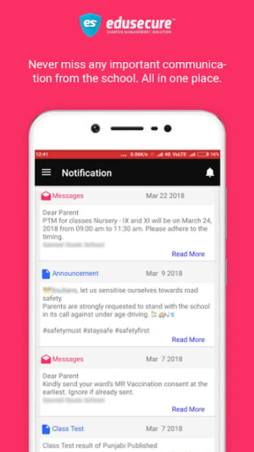 Our mobile application for parents & teachers-St. Xavier's Senior Secondary School App – enhances parent involvement through simplified communication and transactions to make the job of the teacher and school easier. They can now send communication in a paperless manner, and assign homework directly from the board in the classroom.