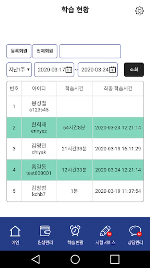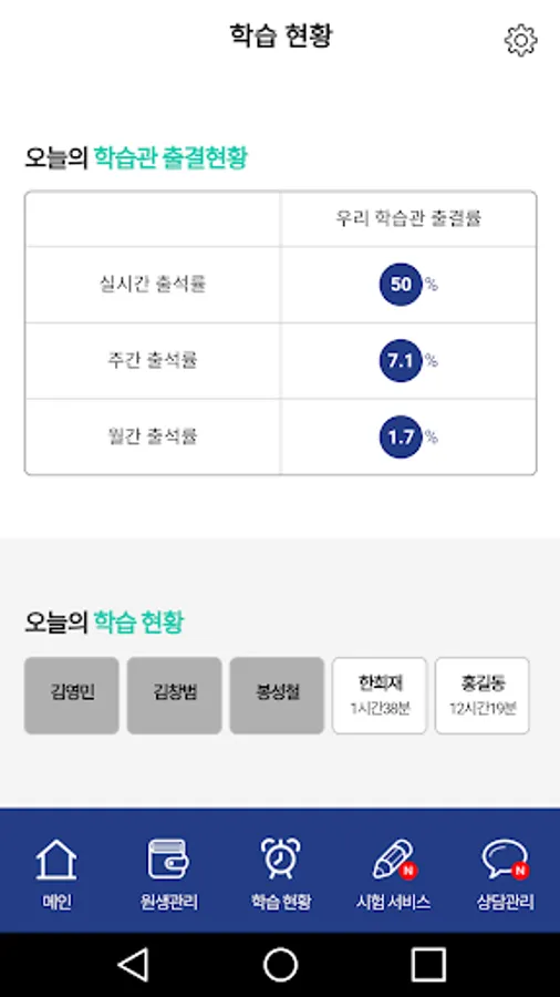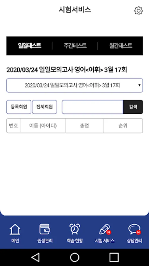 You can check the daily test (English vocabulary) and scores of the Learning Center.
