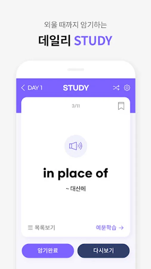 : Memorized words UP! Words you don't know are DOWN! Repeat learning until you memorize everything
