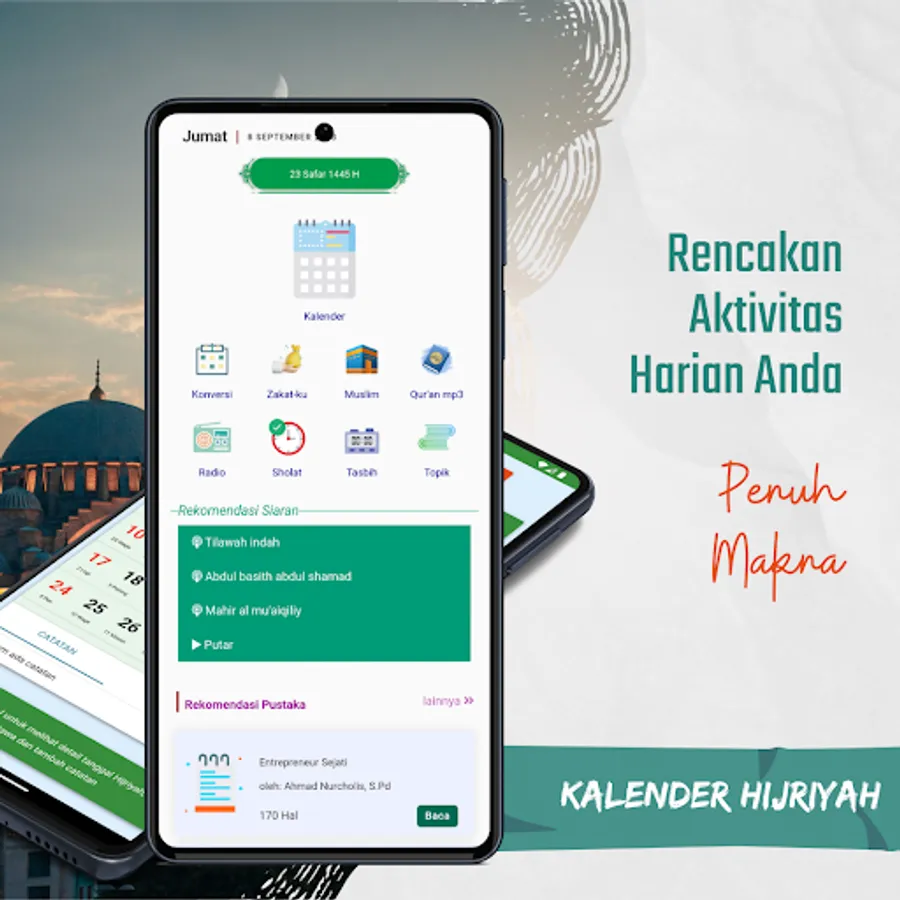 Hijriyah Calendar 1445 / 2023 application complete with Hijriyah date, Javanese calendar and Gregorian calendar. You can also increase your insight into Islamic knowledge using the Muslim Pocket and digital book features. Learning and reciting the Koran becomes easier and more fun with this application.