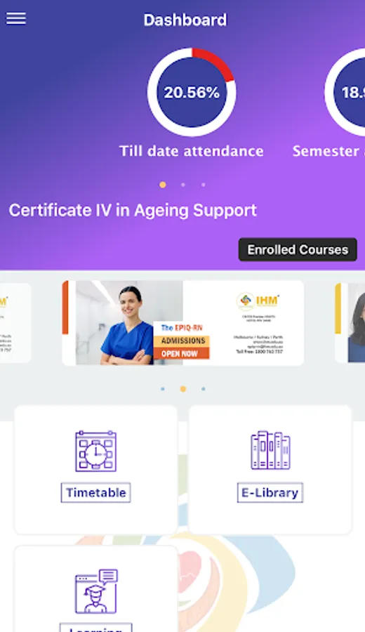 Student Hub for Institute of Health and Nursing Australia (IHNA). Student Hub mobile application provides students with quick access to Timetables, Online Libraries, Student Support and Learning Resources: Handouts, Presentation and References.