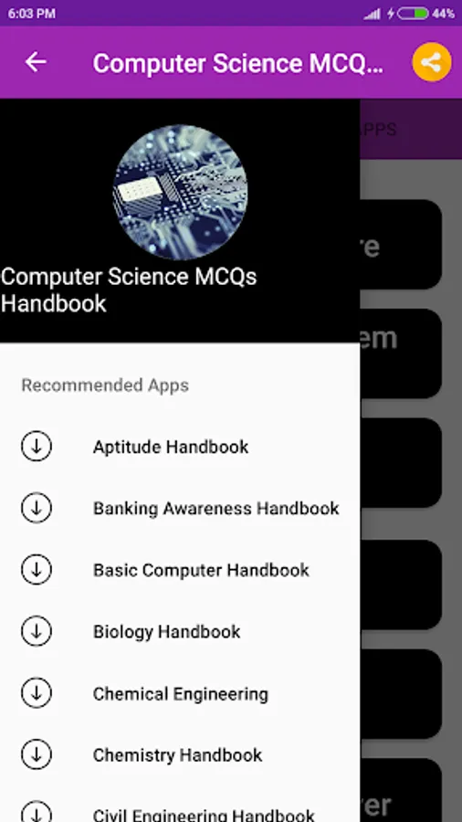 Computer Science MCQ application contains multiple choice questions (MCQ) & answers which helps students & professionals in refreshing the basic concepts and it acts as handy guide for preparing competitive computers science exams.