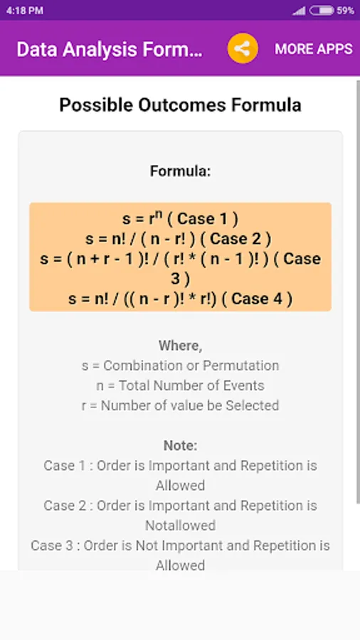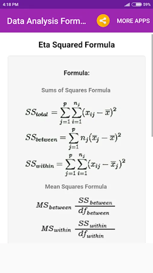 The app lists all the important Data Analysis formulas. Its very useful for student to save valuable time.