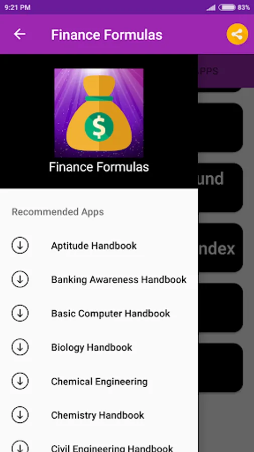 The app lists all the important Finance formulas. Its very useful for student to save valuable time.