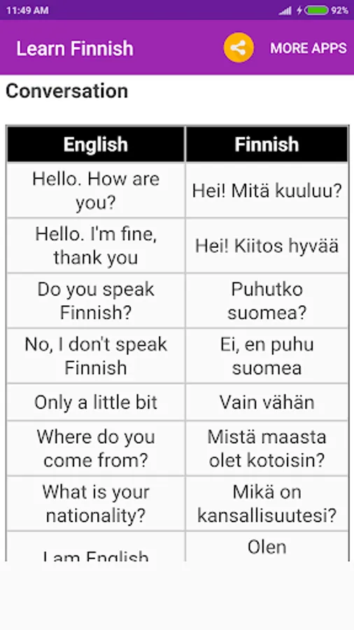 Learn Finnish with 5 minutes of practice daily. Edu Technologies is the quick fix that will teach you core Finnish words and Finnish phrases for conversation, just like a phrasebook. If you want to learn beyond the basics, there are also Finnish grammar lessons available. It’s even great for kids!