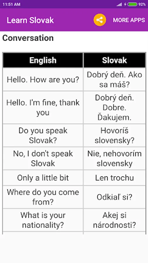 Learn Slovak with 5 minutes of practice daily. Edu Technologies is the quick fix that will teach you core Slovak words and Slovak phrases for conversation, just like a phrasebook. If you want to learn beyond the basics, there are also Slovak grammar lessons available. It’s even great for kids!
