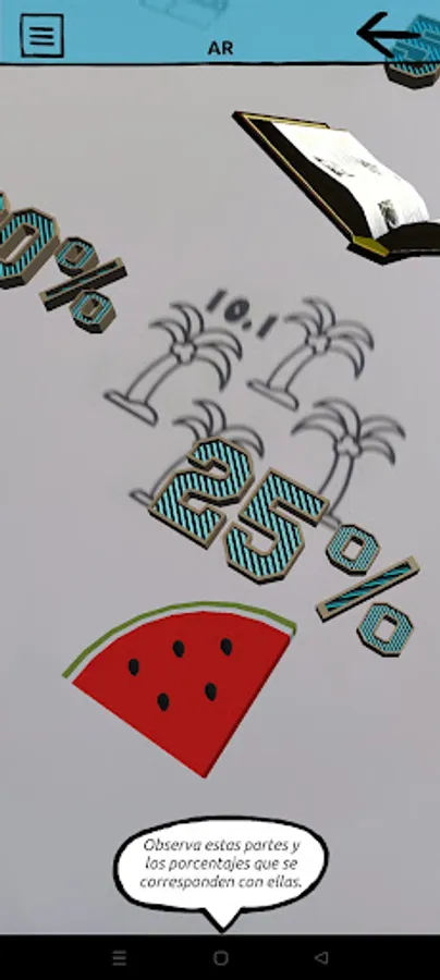 The app includes an AR scanner that allows you to see through augmented reality what is hidden behind the bookmarks in the book.