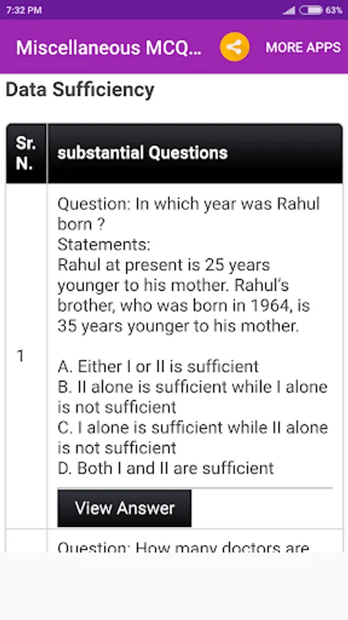 - Miscellaneous MCQs app contains interview puzzles useful for those preparing for job interview.