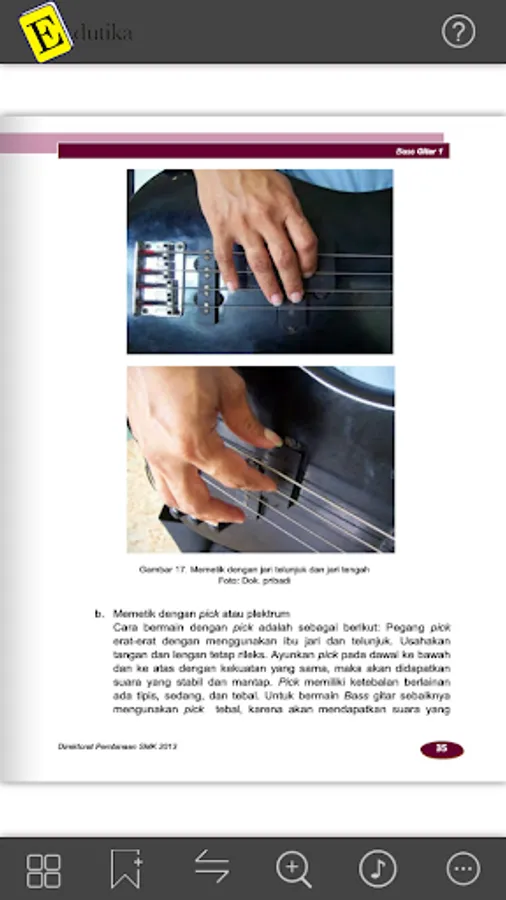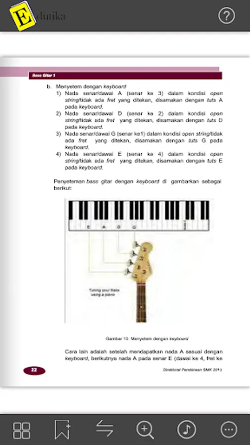 the application of learning materials to play guitar bass for beginners is an interactive guide book that contains complete material to learn how to use bass guitar both acoustic and electric.