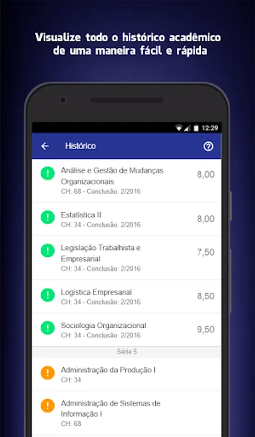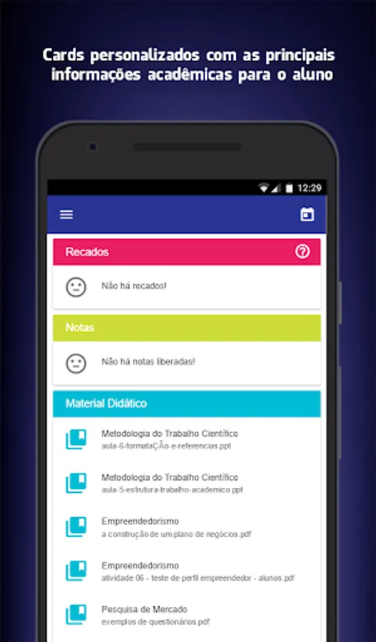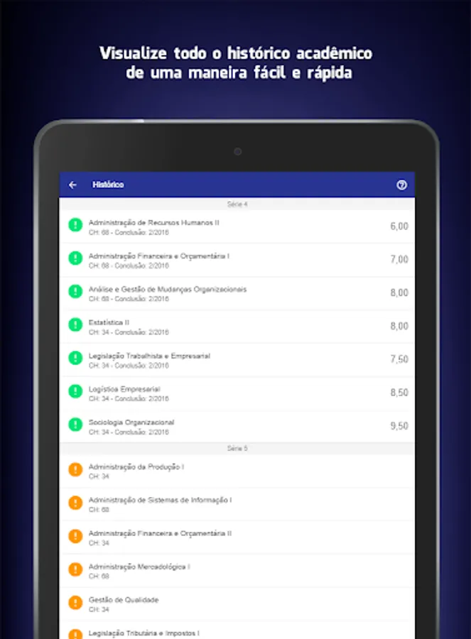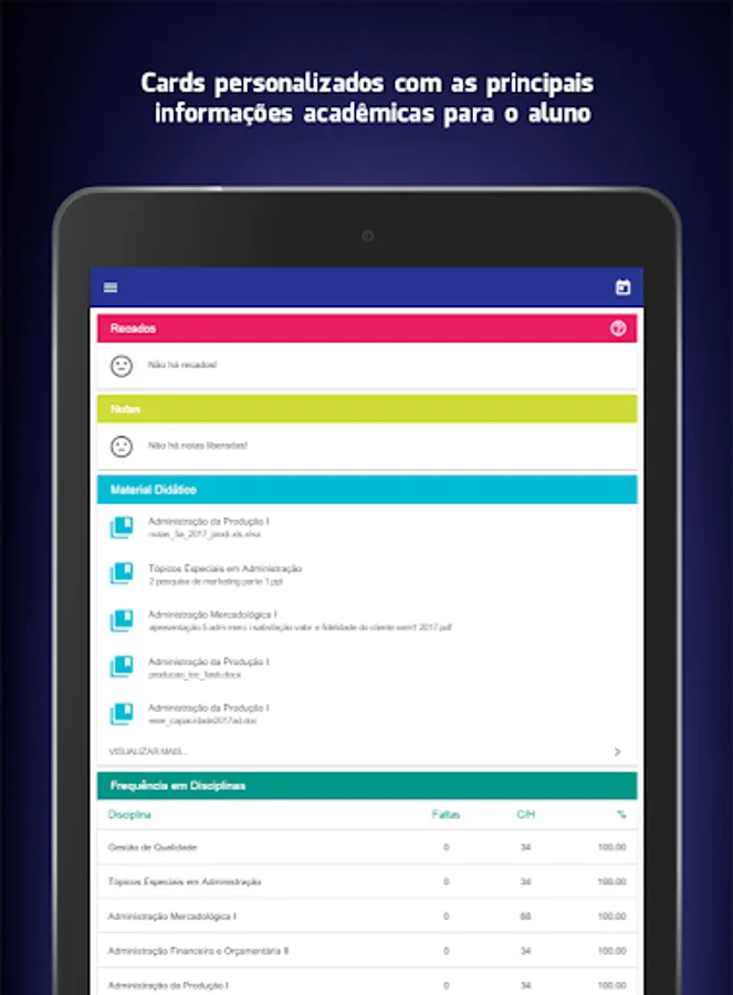 With just a few taps on the smartphone or tablet you will have the main academic information in the palm.