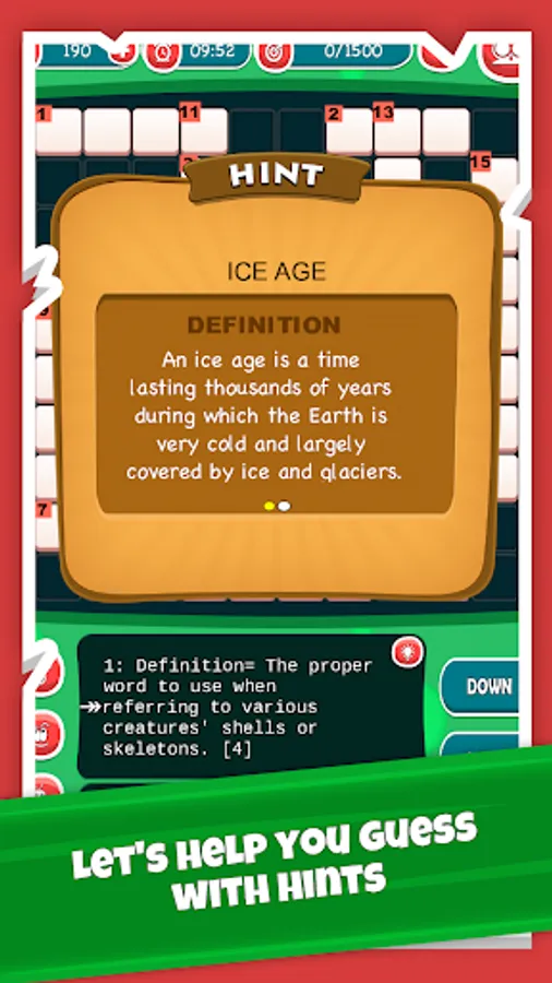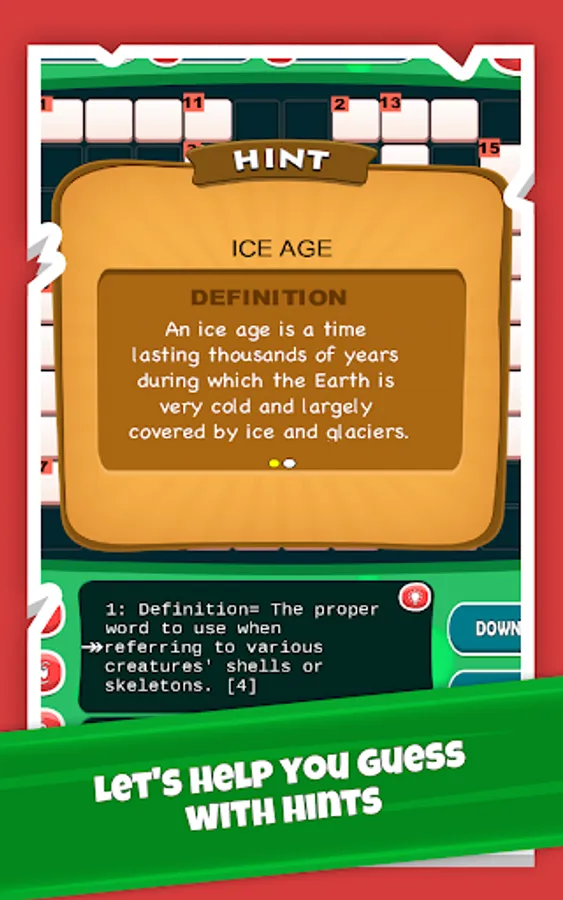 -- Peek-a-Boo - Reveals a word to take you close to the answer.