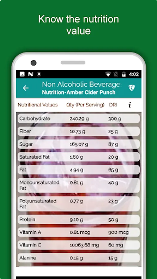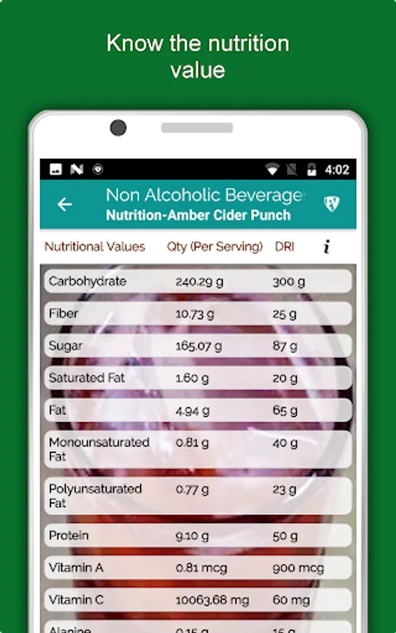 *NUTRITIONAL value of all Non Alcoholic Drink Recipes and all ingredients.