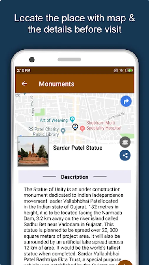 Apart from this, Ahmedabad Travel & Explore guides you Why, When and How to visit various places in Ahmedabad with precise location on the detailed Map. There are two ways to explore this app - Category view and EduBank favorite places view. Pin your destinations and get the routes on the Map. Not only this, you can see exactly how the places look like with Street View integrated in this app. The app also has a feature to Rate and write Review/Experience regarding entity(s) through Login. Your Travel experience and rating will help the user community.