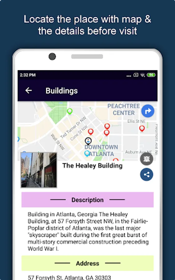 Apart from this, Atlanta Travel & Explore guides you Why, When and How to visit various places in Atlanta with precise location on the detailed Map. There are two ways to explore this app - Category view and EduBank favorite places view. Pin your destinations and get the routes on the Map. Not only this, you can see exactly how the places look like with Street View integrated in this app. The app also has a feature to Rate and write Review/Experience regarding entity(s) through Login. Your Travel experience and rating will help the user community.