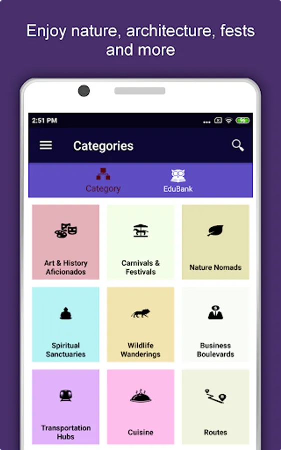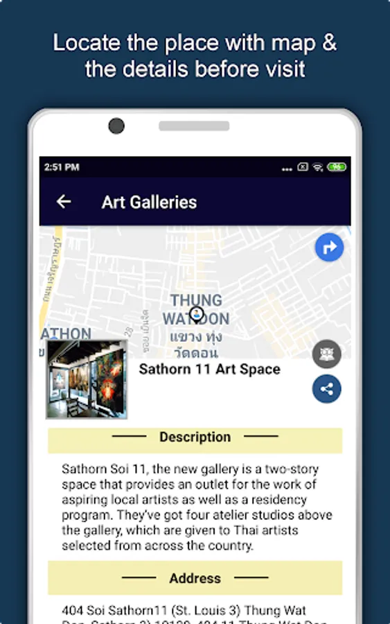 Apart from this, Bangkok Travel & Explore guides you Why, When and How to visit various places in Bangkok with precise location on the detailed Map. There are two ways to explore this app - Category view and EduBank favorite places view. Pin your destinations and get the routes on the Map. Not only this, you can see exactly how the places look like with Street View integrated in this app. The app also has a feature to Rate and write Review/Experience regarding entity(s) through Login. Your Travel experience and rating will help the user community.