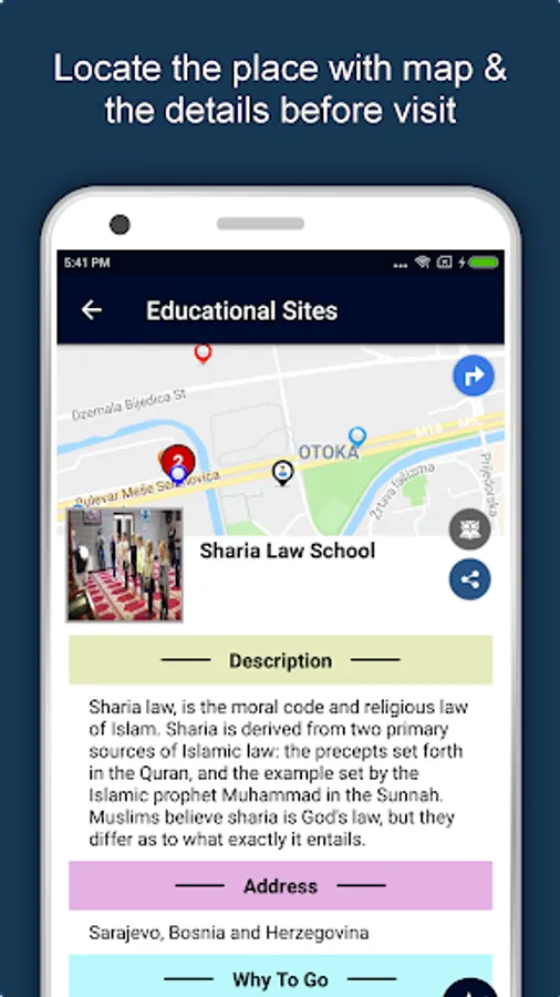 Apart from this, Bosnia and Herzegovina Travel & Explore guides you Why, When and How to visit various places in Bosnia and Herzegovina with precise location on the detailed Map. There are three ways to explore this app - Category view, City view and EduBank favorite places view. Pin your destinations and get the routes on the Map. Not only this, you can see exactly how the places look like with Street View integrated in this app. The app also has a feature to Rate and write Review/Experience regarding entity(s) through Login. Your Travel experience and rating will help the user community.