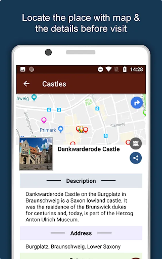 All features and images in Braunschweig City Guide are available offline. This Braunschweig Travel App is for the globetrotters who go by the quote, “All journeys have secret destinations of which the traveler is unaware”. With Braunschweig Tourist Guide, Unveil the Veiled places, Connect with plethora of people, understand culture, art and history, Speak with natives in their language, relish the authentic food and take delight in the festivities.