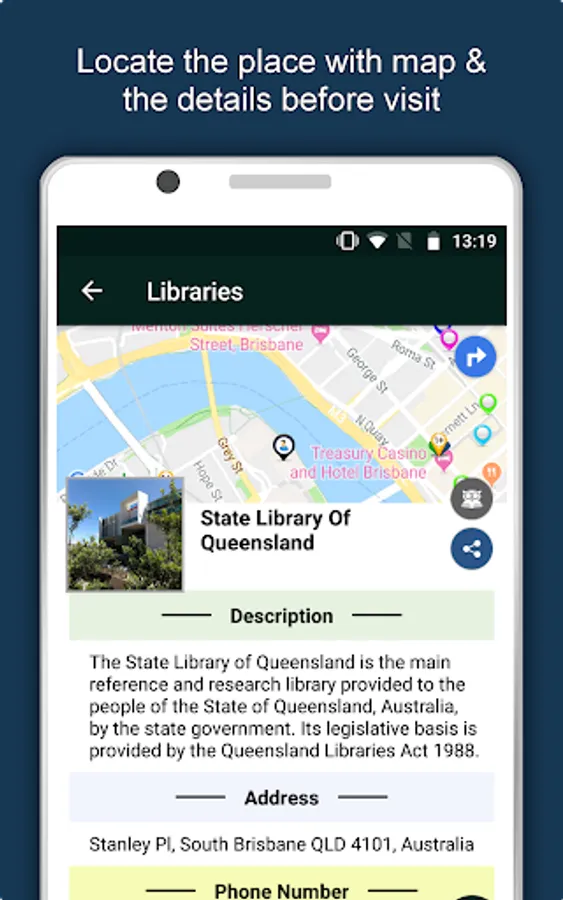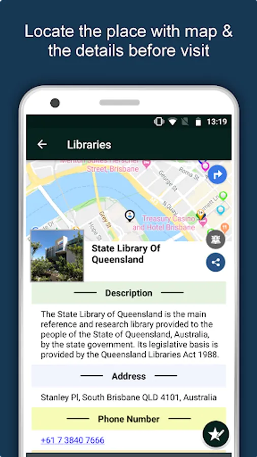 Apart from this, Brisbane Travel & Explore guides you Why, When and How to visit various places in Brisbane with precise location on the detailed Map. There are two ways to explore this app - Category view and EduBank favorite places view. Pin your destinations and get the routes on the Map. Not only this, you can see exactly how the places look like with Street View integrated in this app. The app also has a feature to Rate and write Review/Experience regarding entity(s) through Login. Your Travel experience and rating will help the user community.