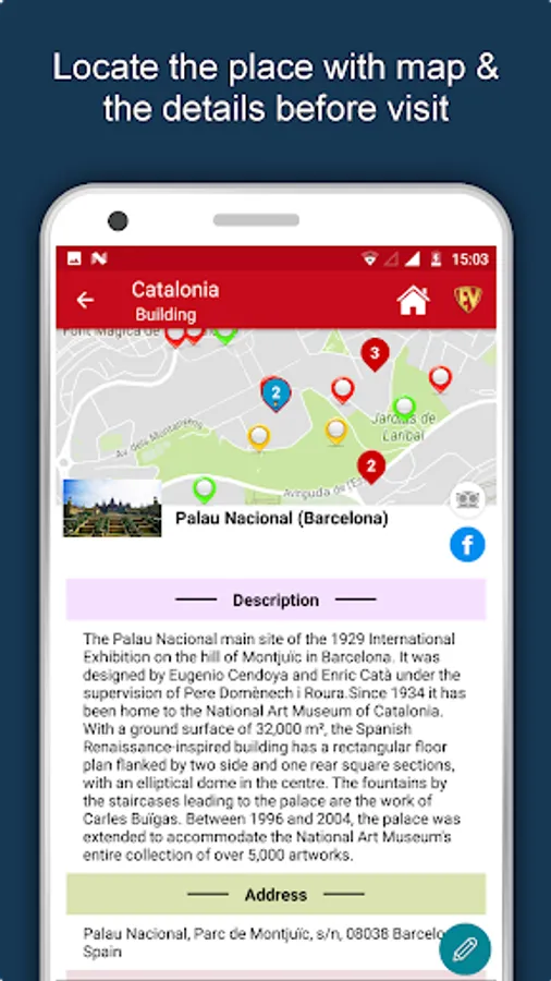 Apart from this, Catalonia Travel & Explore guides you Why, When and How to visit various places in Catalonia with precise location on the detailed Map. There are two ways to explore this app - Category view and EduBank favorite places view. Pin your destinations and get the routes on the Map. Not only this, you can see exactly how the places look like with Street View integrated in this app. The app also has a feature to Rate and write Review/Experience regarding entity(s) through Login. Your Travel experience and rating will help the user community.