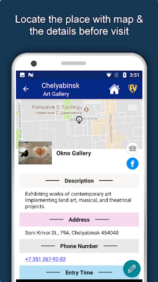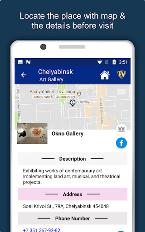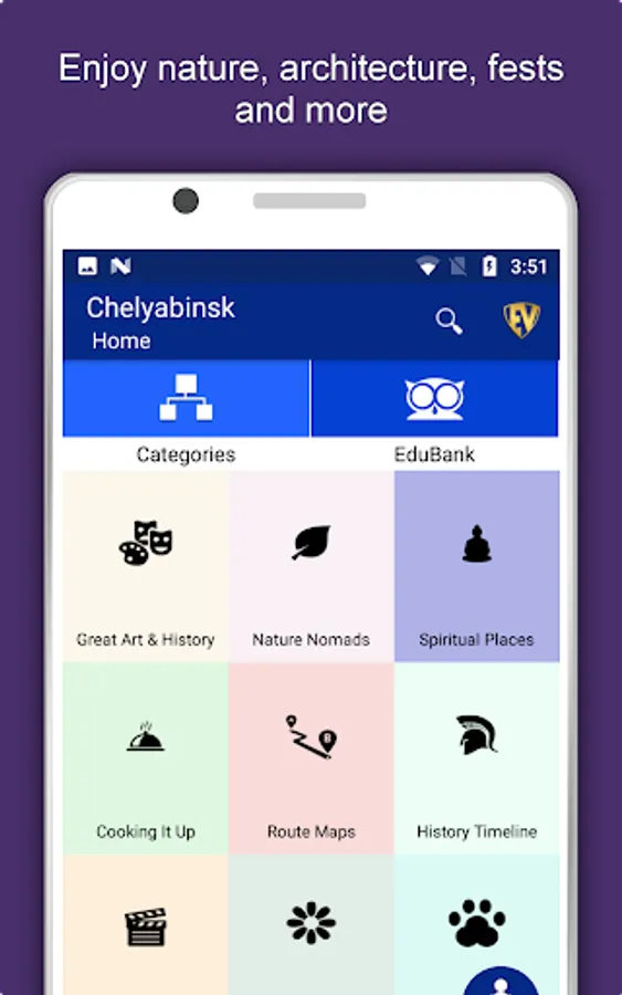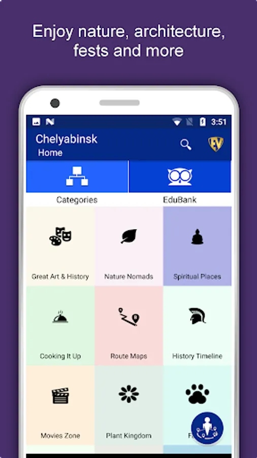 Apart from this, Chelyabinsk Travel & Explore guides you Why, When and How to visit various places in Chelyabinsk with precise location on the detailed Map. There are two ways to explore this app - Category view and EduBank favorite places view. Pin your destinations and get the routes on the Map. Not only this, you can see exactly how the places look like with Street View integrated in this app. The app also has a feature to Rate and write Review/Experience regarding entity(s) through Login. Your Travel experience and rating will help the user community.